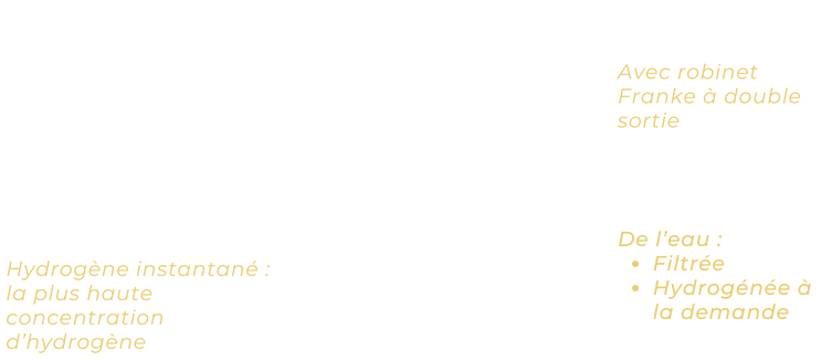 Est inclus dans l’offre : un robinet Franke avec deux sorties : eau chaude/froide et eau hydrogénée