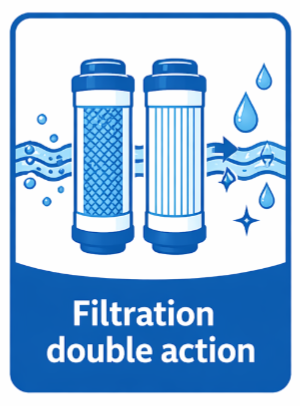 Le double système de filtres purifie votre eau, en plus d'être hydrogénée.